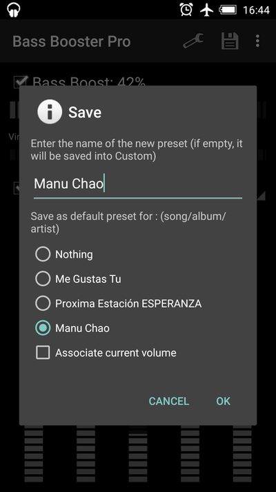 This feature allows presets to be automatically adjusted according to the music that is being played. Let's say that you're listening to some Alternative Rock music, by default, Bass Booster will automatically choose the Rock preset, but if you create a custom "Rock" preset, yours will be selected.